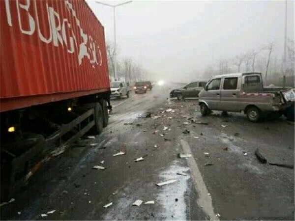 2016年11月21日上午9時許,受雨雪天氣的影響,京昆高速平陽段太原方向65KM+500M處,發(fā)生了多車追尾事故,事故車輛多大56輛,傷亡人數(shù)共計54人,其中17人不幸遇難。這起交通安全事故系雨雪天氣道路結冰濕滑導致的,由于地面結冰導致車輛失去抓地力,加上大貨車車身較重,形成連環(huán)撞擊。